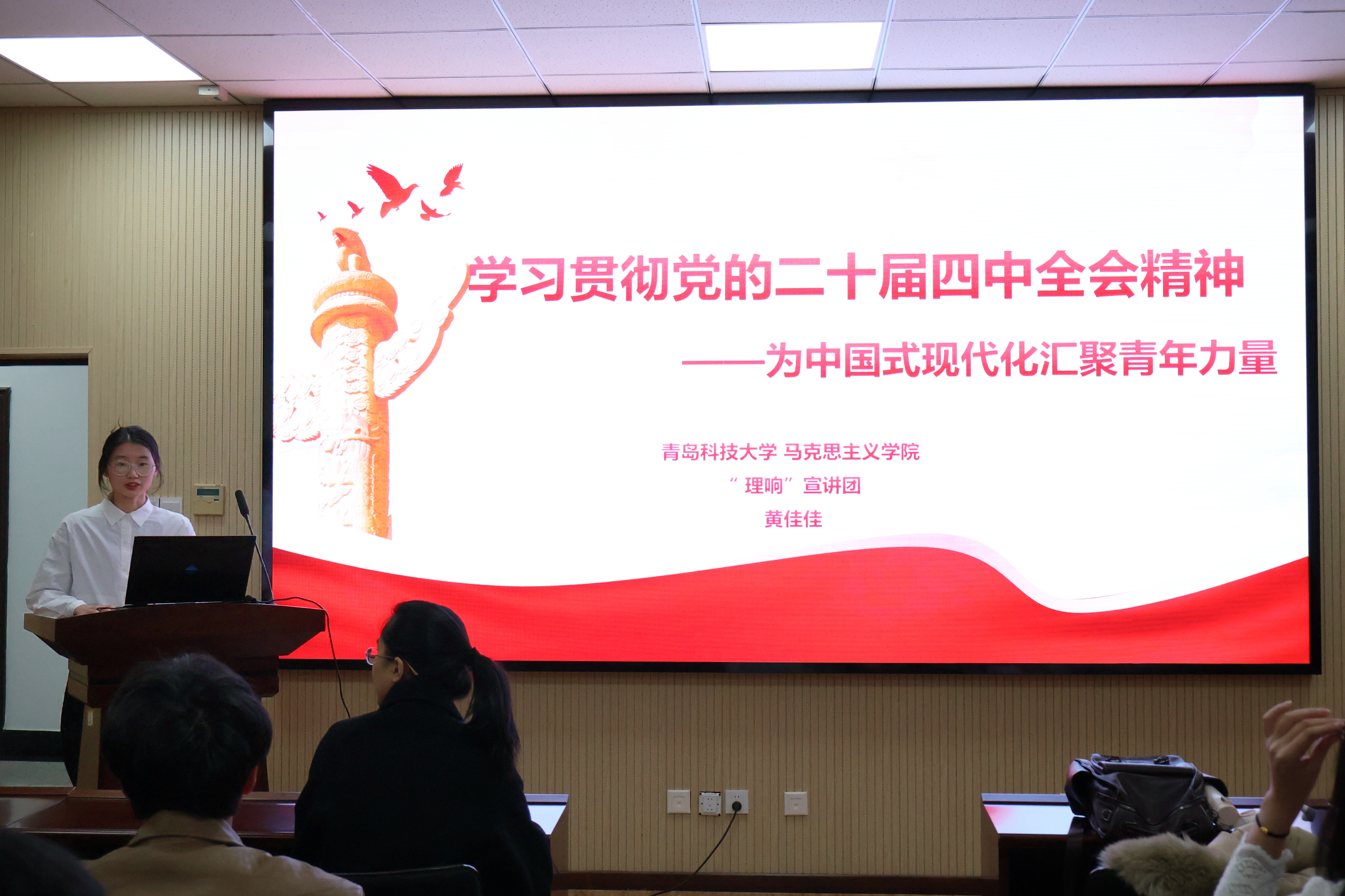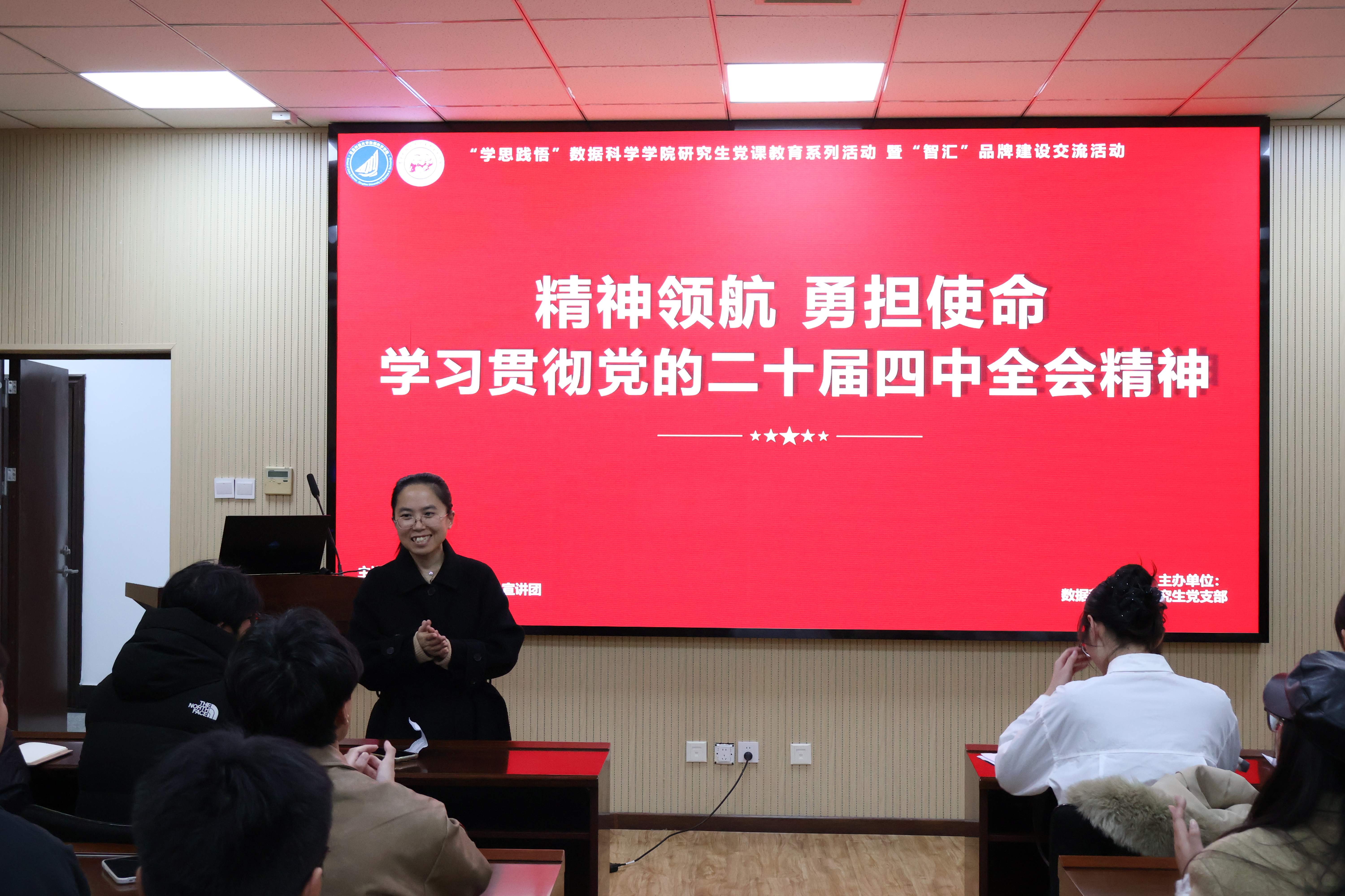 11月27日,马克思主义学院与数据科学学院联合举办学习贯彻党的二十届四中全会精神活动。马克思主义学院“理响”宣讲团成员、数据科学学院研究生党支部全体成员参加,活动由数据科学学院研究生党支部书记孙丽敏主持。