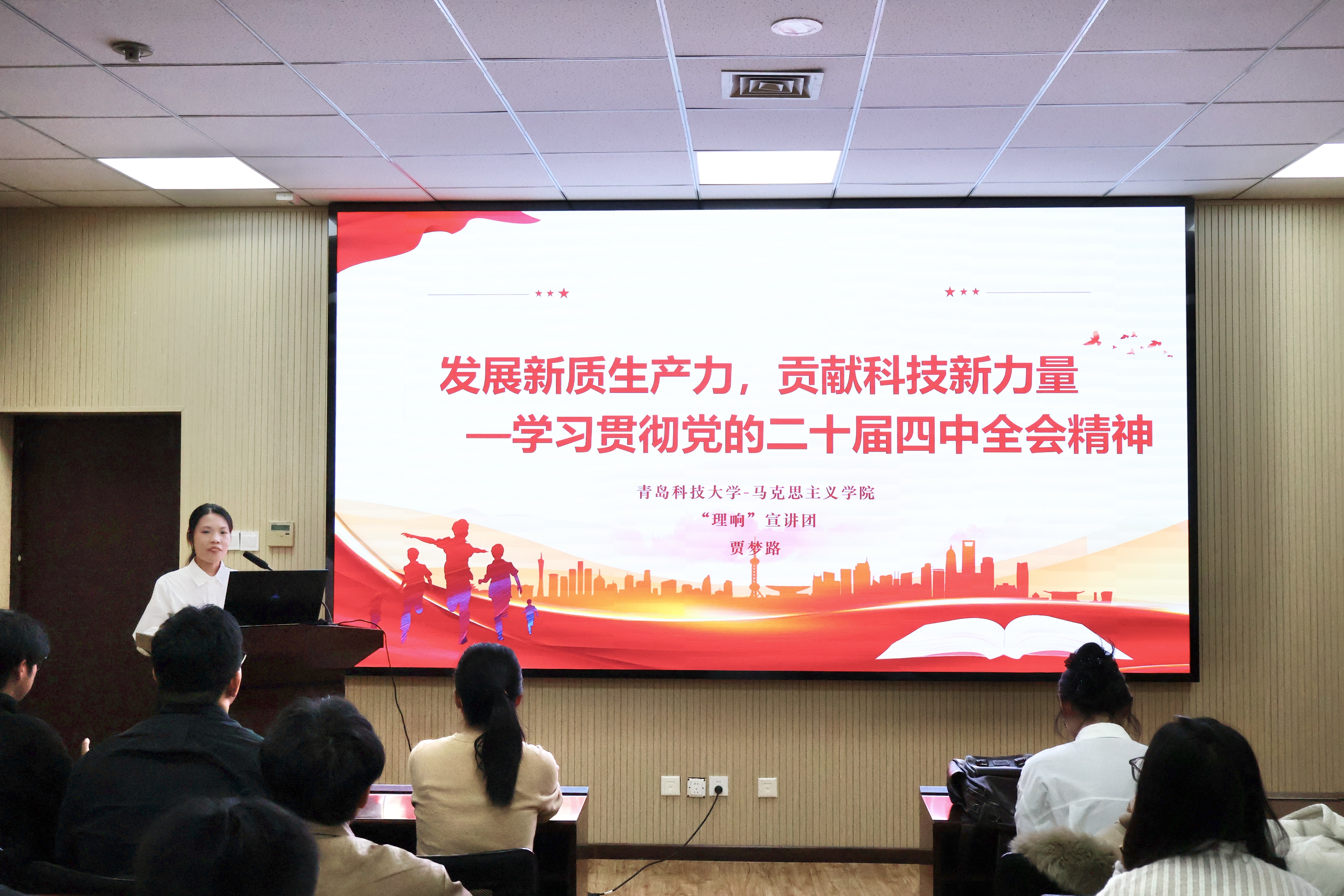 “理响”宣讲团成员黄佳佳、贾梦路在数据科学学院作学习贯彻党的二十届四中全会精神主题宣讲。黄佳佳回顾了“十四五”时期我国在经济发展、创新驱动等多方面取得的重大成就,深刻阐释了党中央关于国内外形势的基本判断以及“十五五”时期经济社会发展的指导思想、主要目标、重大原则和重要部署,并号召大家以历史主动精神应对风险挑战,共同开创中国式现代化建设新局面。贾梦路围绕党的二十届四中全会,重点阐述了“十四五”时期我国在科技领域取得的重大成就以及未来五年科技发展的战略部署,呼吁青年学生勇担时代使命,积极投身科技强国建设。
