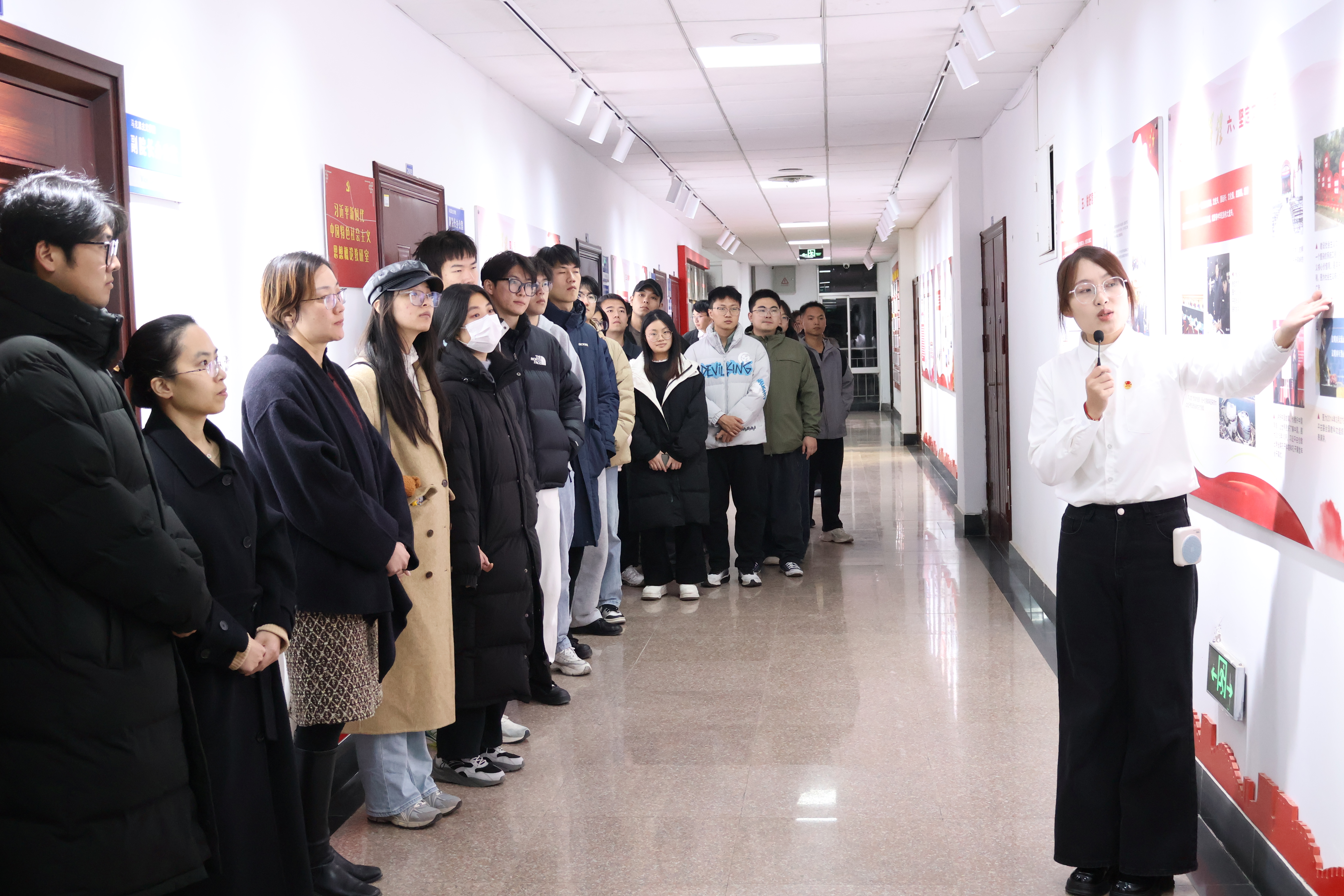 马克思主义学院“理响”宣讲团成员秦士河、高原作“社会主义五百年”展板宣讲。秦士河、高原清晰地梳理了社会主义从空想到科学、从理论到实践、从一国实践到多国发展、从遭遇挫折到中国特色社会主义焕发蓬勃生机的宏大历史进程。展板宣讲为同学们深刻认识社会主义发展的曲折性与必然性,理解中国特色社会主义的历史逻辑、理论逻辑和实践逻辑,为深入学习贯彻党的最新理论成果奠定了坚实的历史与思想基础。