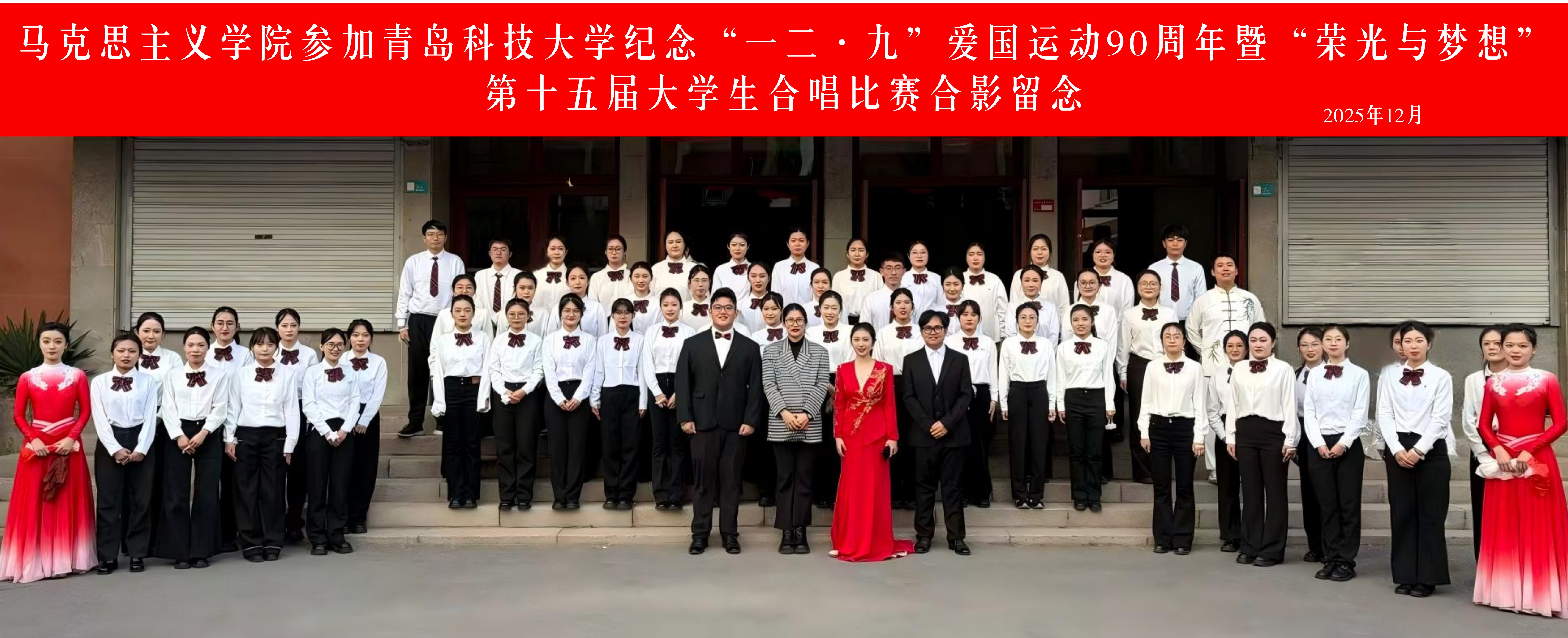 12月9日下午,青岛科技大学于四方校区西礼堂举办纪念“一二·九”爱国运动90周年暨“荣光与梦想”第十五届大学生合唱比赛。马克思主义学院2024级、2025级全体研究生参加本次比赛。