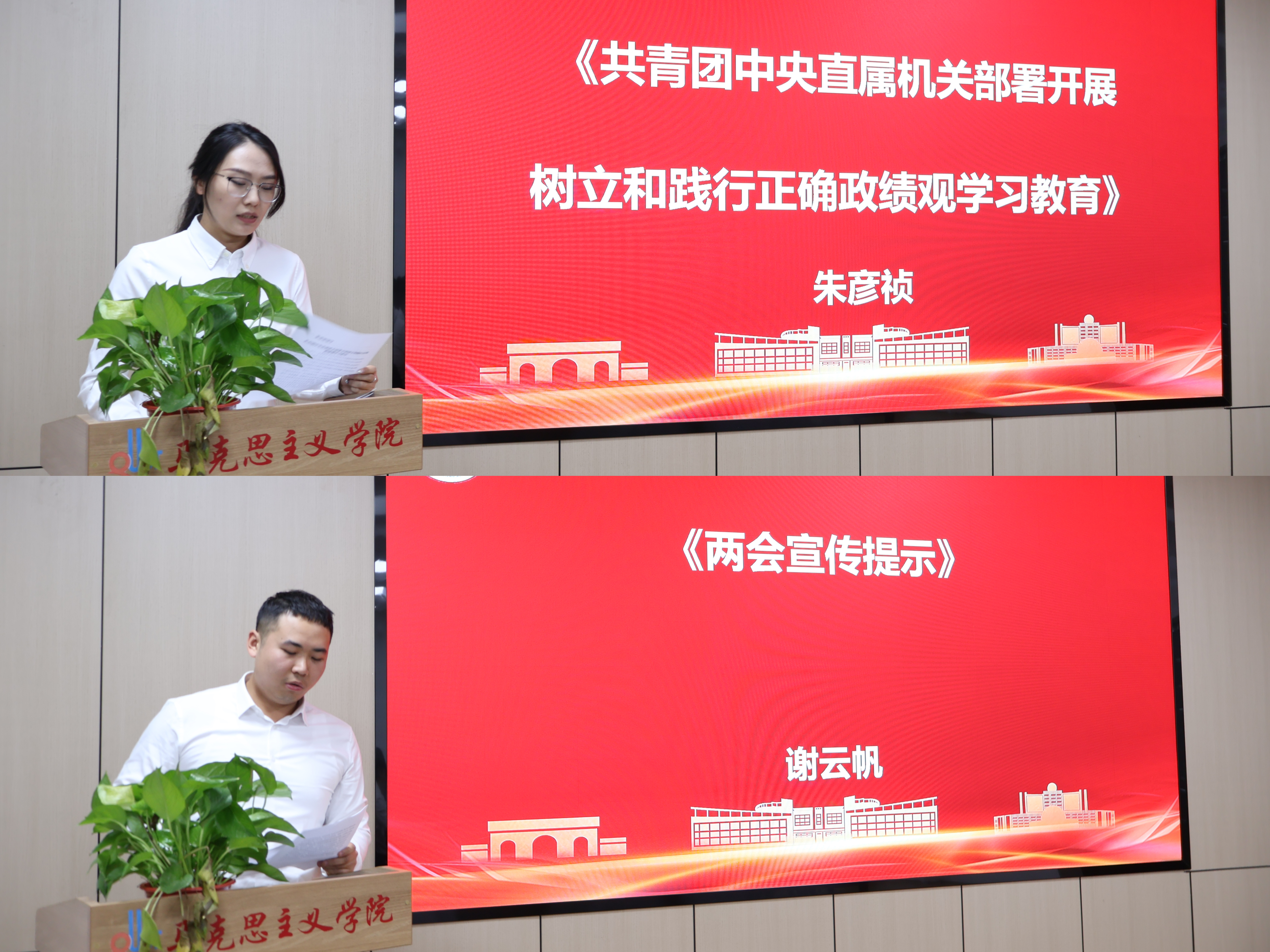 朱彦祯领学《共青团中央直属机关部署开展树立和践行正确政绩观学习教育》,并指出,青年骨干要牢记初心使命,摒弃懈怠松散心态,坚持实事求是、真抓实干,切实把正确政绩观体现在具体行动上。谢云帆围绕2026年全国两会宣传提示开展领学,详细解读宣传工作固定表述,引导全体骨干准确把握两会精神实质。