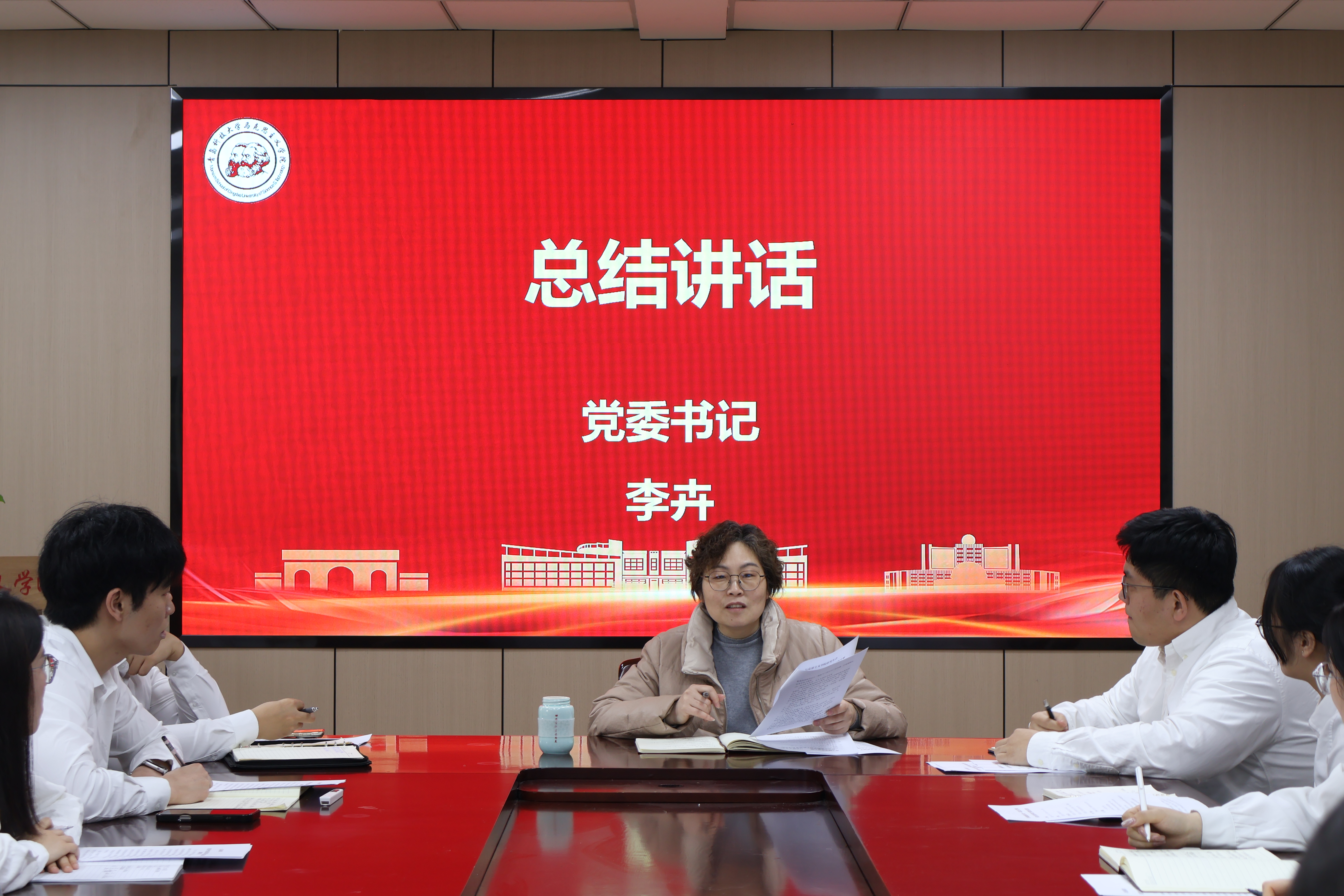 在听取各部门工作部署后,李卉作指导讲话并强调,新学期新起点,研会工作要坚持目标导向,提前谋划、周密部署,确保各项工作计划落地见效。她提出五点要求,一是深化理论宣讲,将树立和践行正确政绩观学习教育纳入宣讲计划,扩大宣讲范围,加强与校外单位的沟通协作,充分打造“理响”宣讲团金色名片。二是聚焦科创育人,以挑战杯等A类赛事为抓手,挖掘培育精品项目,引导学生将专业知识与社会实践相结合,提升创新能力,拓宽就业视野。三是强化师生联动,组建特色兴趣小组,丰富师生交流形式,切实拉近师生距离,助力研究生成长成才。四是浓厚学术氛围,引导学生深耕马克思主义理论研究,充分开展学术讲座、沙龙等活动,提升学生理论研究能力和学术素养。五是注重队伍建设,做好人才培养工作,完善工作衔接机制,确保研会工作的连续性和稳定性。