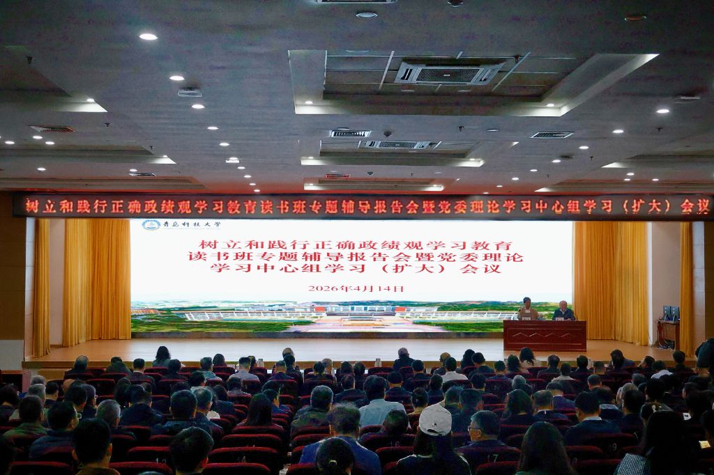 4月14日下午,青岛科技大学于崂山校区第二报告厅举办树立和践行正确政绩观学习教育读书班专题辅导报告会暨党委理论学习中心组学习(扩大)会议。会议特邀原中共中央党史研究室领导秘书、学术处长、宣传教育局副局长,青岛科技大学兼职教授薛庆超作专题辅导报告。党委书记杨天梅出席会议,党委副书记李勇主持会议。马克思主义学院全体师生参加。