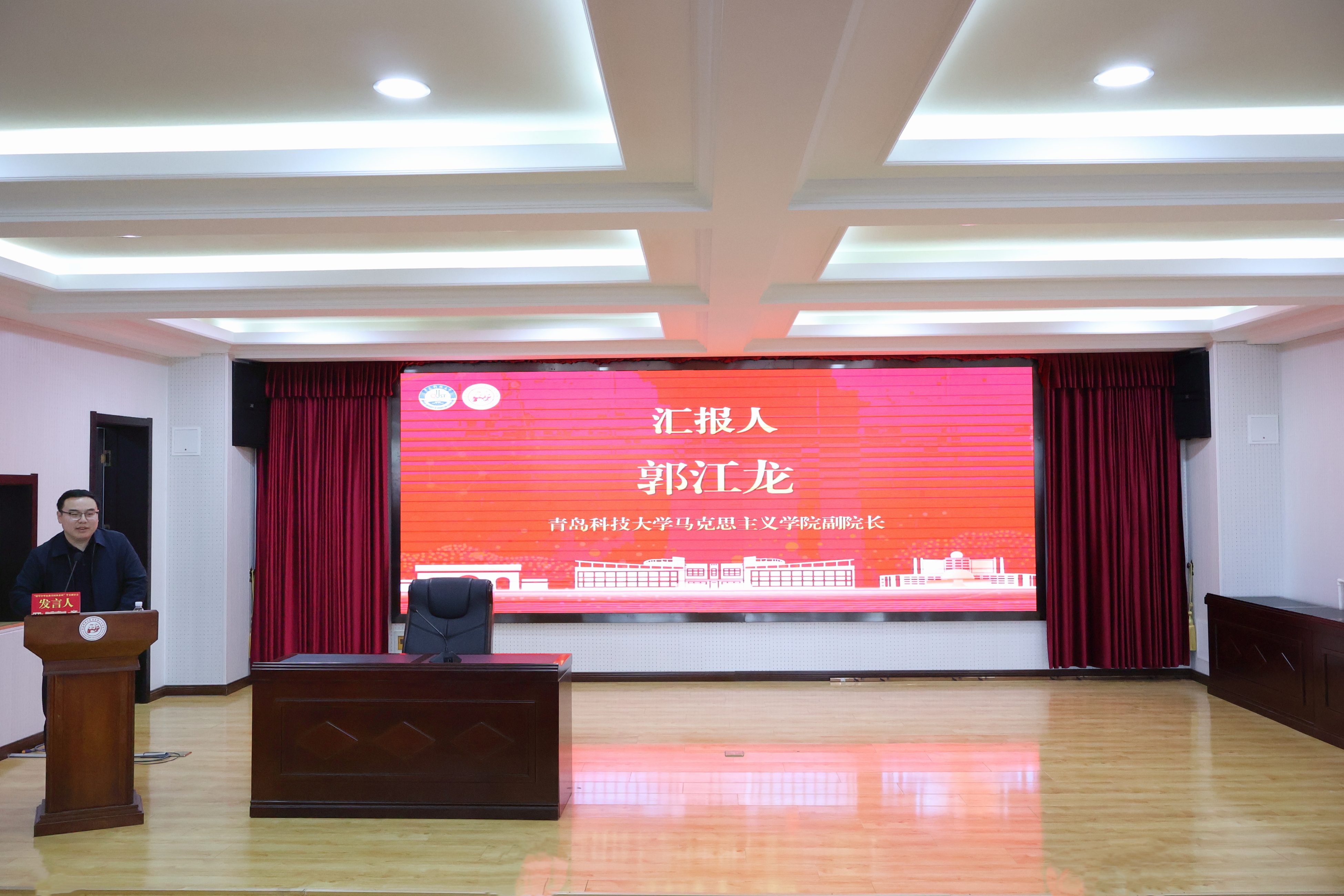 会上进行了山东省宗教中国化特色智库建设论证,青岛科技大学马克思主义学院副院长郭江龙围绕智库建设工作业绩、工作计划与意见建议等方面展开阐述。