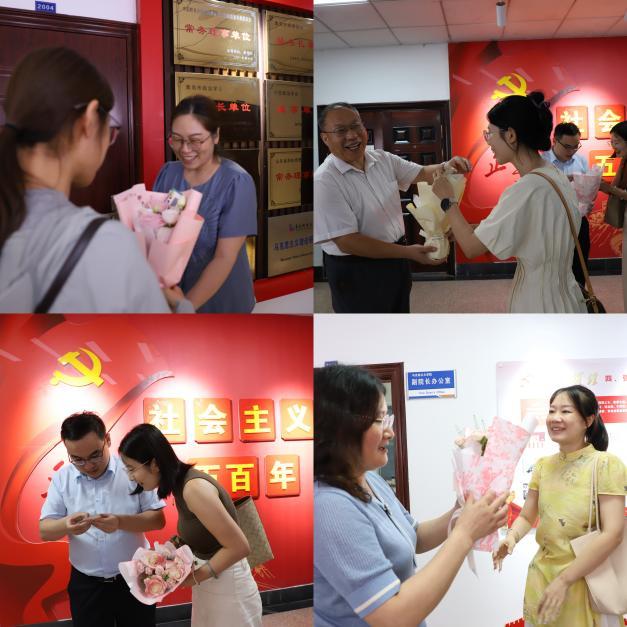 会后,2025级全体新生向学院老师送上鲜花和手写贺卡,传递马克思主义学院学子最真挚的节日祝福。学院党总支书记李卉、院长曹胜、副院长郭江龙、王建美代表学院教师对同学们的祝福表示感谢。