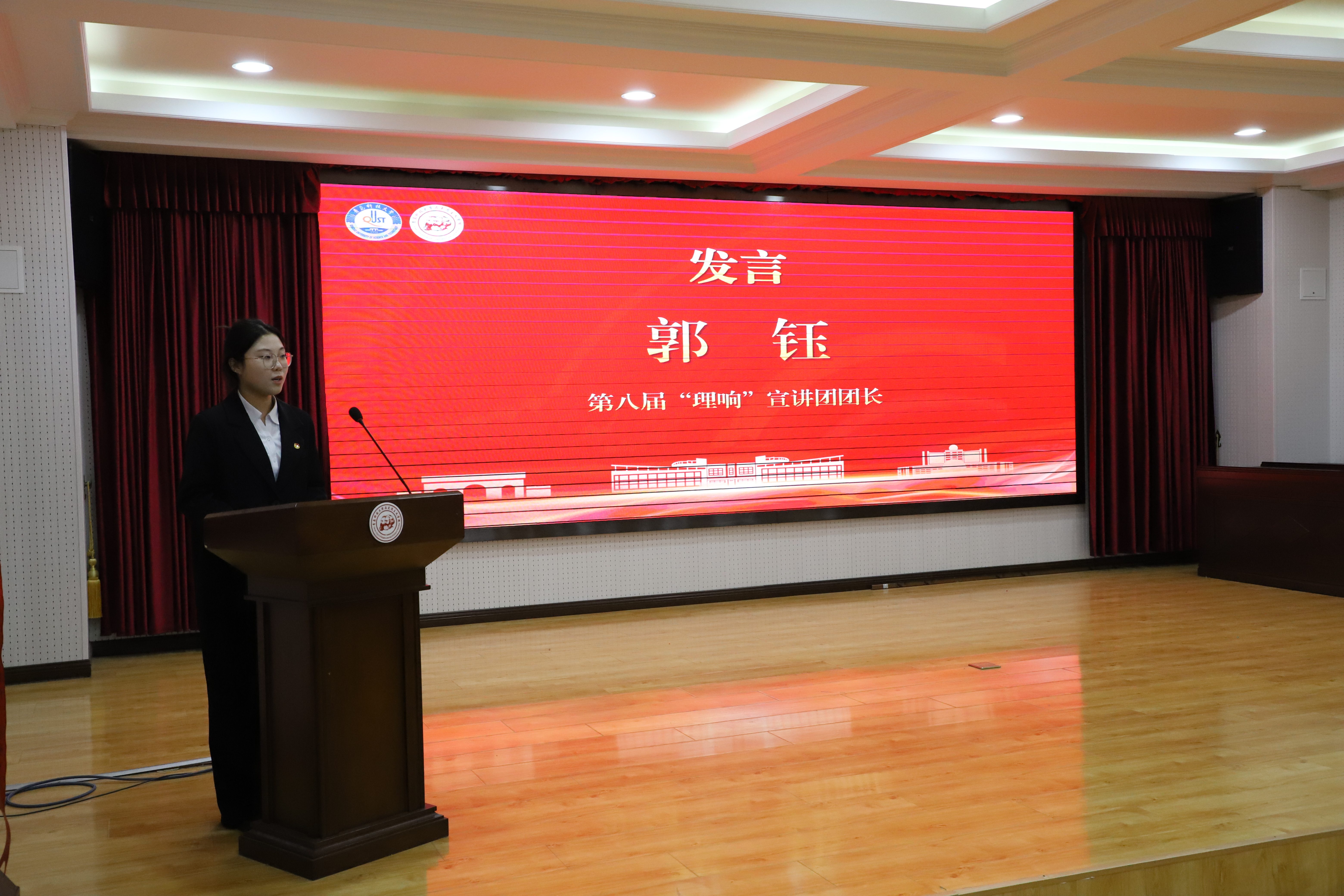 第八届“理响”宣讲团团长郭钰代表新一届宣讲团全体成员发言,她表示将带领宣讲团成员深耕理论学习,创新宣讲形式,让党的创新理论“飞入寻常百姓家”。