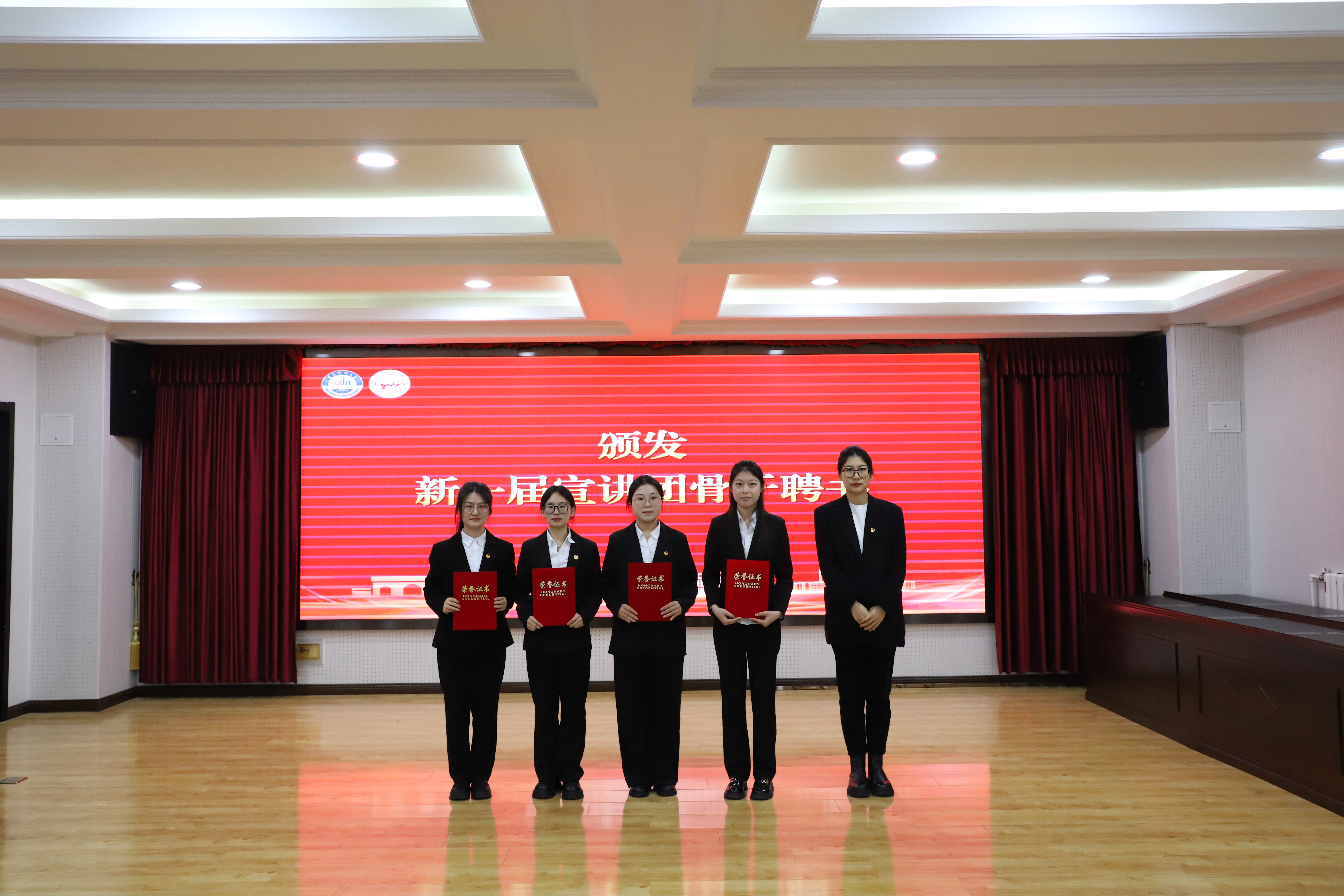 李卉为新一届研究生会骨干颁发聘书,郭佩佩为新一届宣讲团骨干颁发聘书。