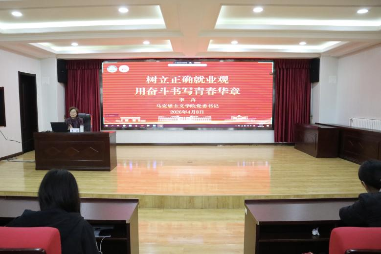4月8日上午,马克思主义学院于学术报告厅举办“青马铸魂·领航讲堂”专题思政课,学院党委书记李卉以“树立正确就业观 用奋斗书写青春华章”为题面向全体研究生开展授课。