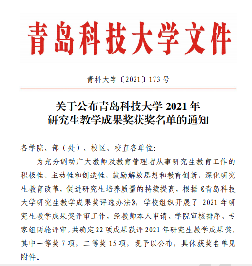 青岛科技大学研究生教学成果二等奖:研究生思政课“中国特色社会主义理论与实践研究”改革与实践