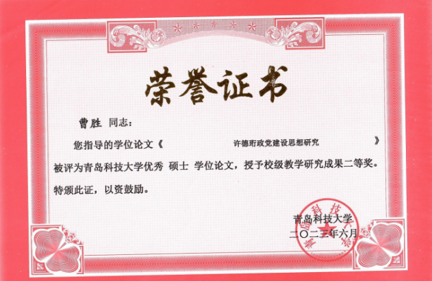 青岛科技大学教学研究成果二等奖:许德珩党建思想研究