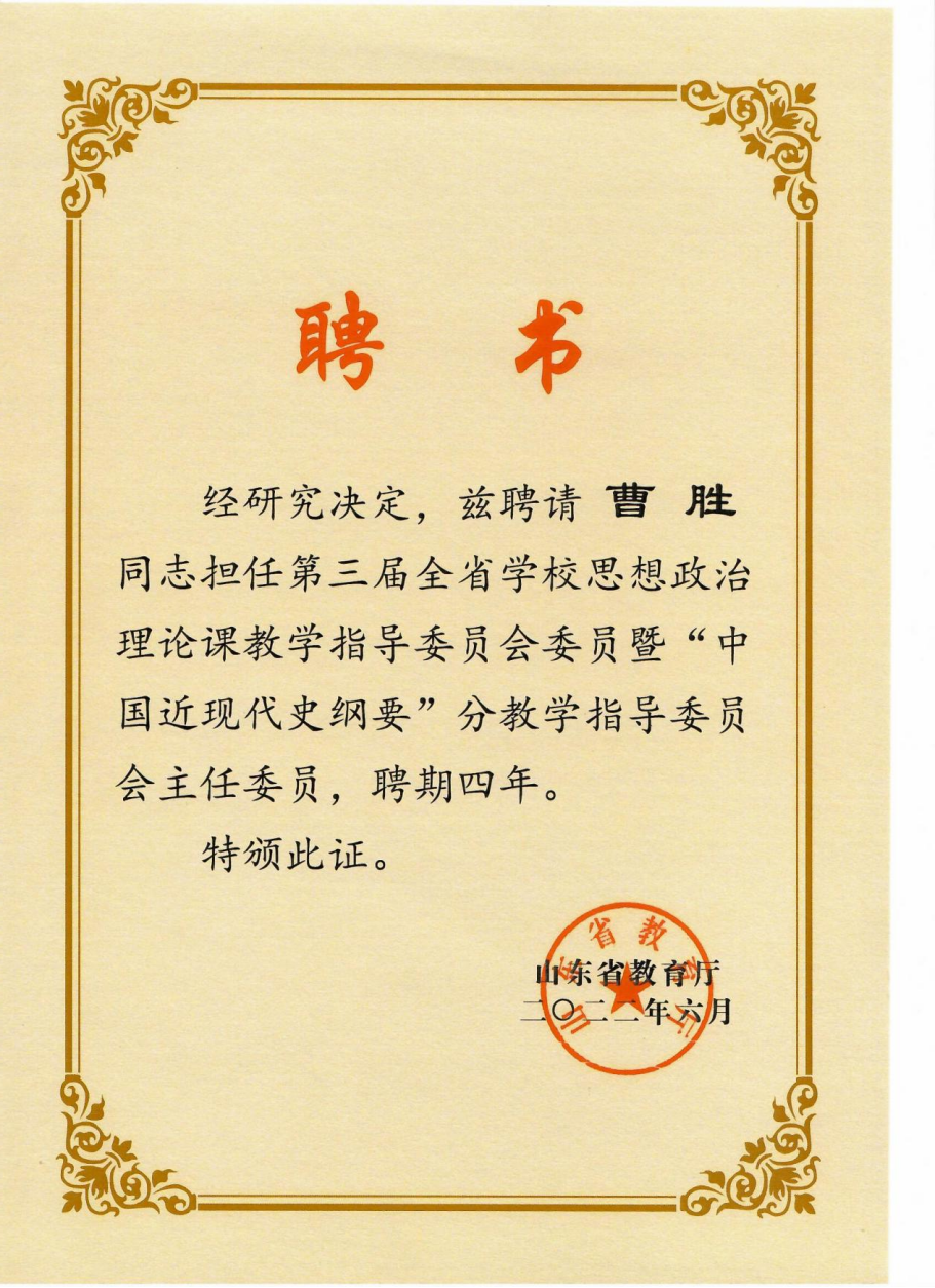 第三届全省学校思想政治理论课教学指导委员会委员暨“中国近现代史纲要”分教学指导委员会主任委员:曹胜