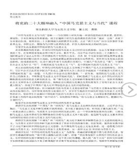 中宣部党建网.《青岛日报》理论版:将党的二十大精神融入“中国马克思主义与当代”课程 2022年10月11日