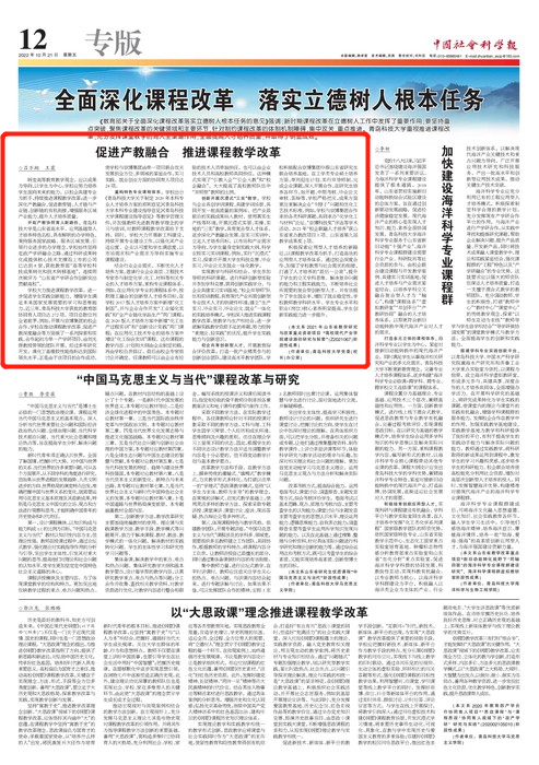 《中国社会科学报》:促进产教融合 推进课程教学改革