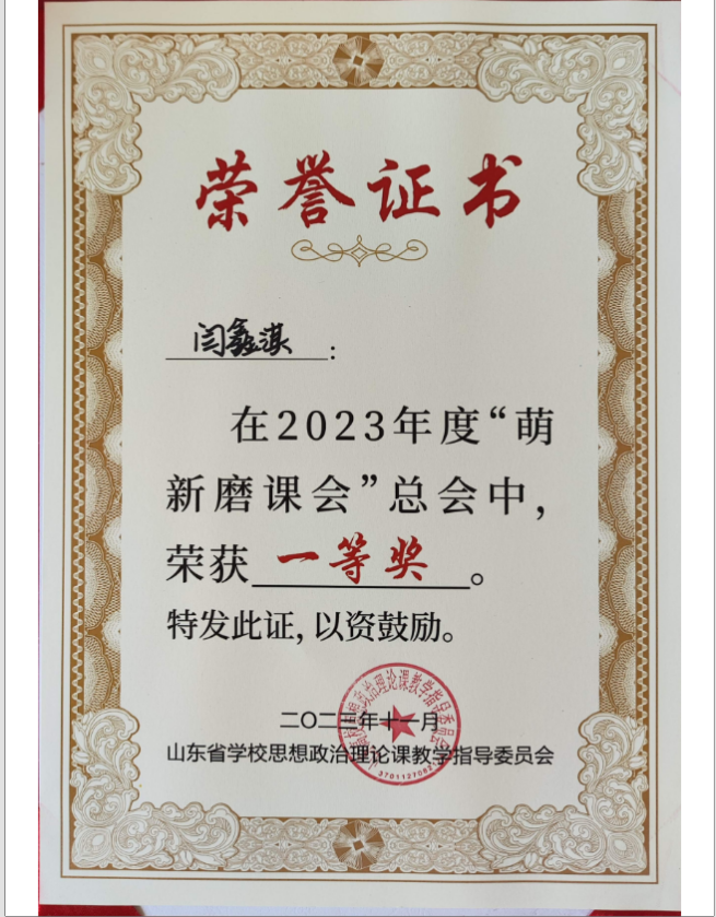 山东省萌新磨课比赛一等奖:闫鑫淇