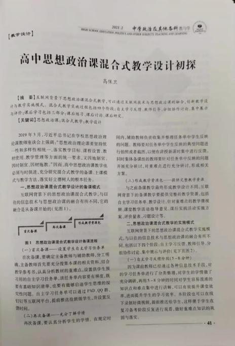 现代教育202102:《高中思想政治混合式教学设计初探》,被人大复印资料全文转载
