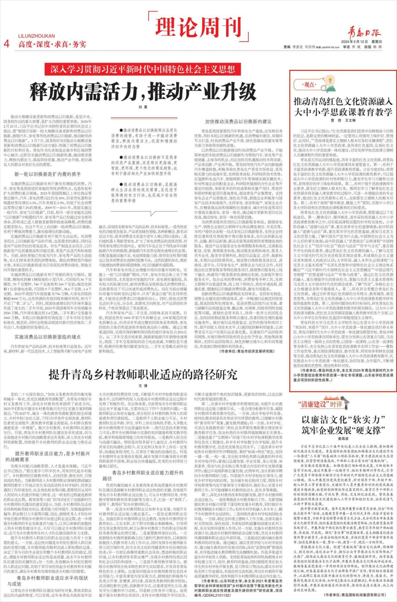 青岛日报20240512:《推动青岛红色文化资源融入大中小学思政课教育教学》
