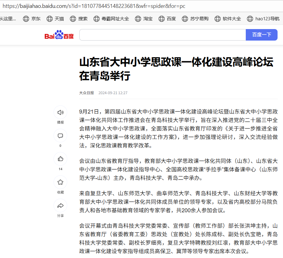 山东省大中小学思政课一体化建设高峰论坛在青岛举行