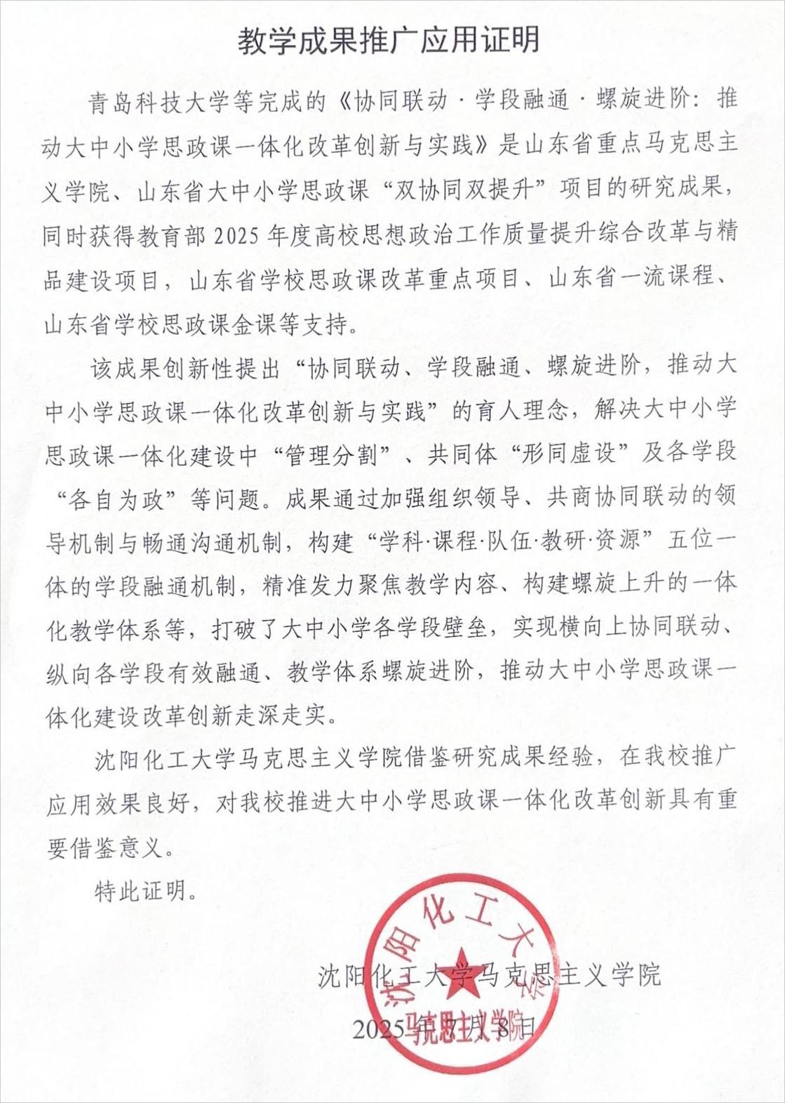 “协同联动·学段融通·螺旋进阶:大中小学思政课一体化改革创新与实践”教学成果