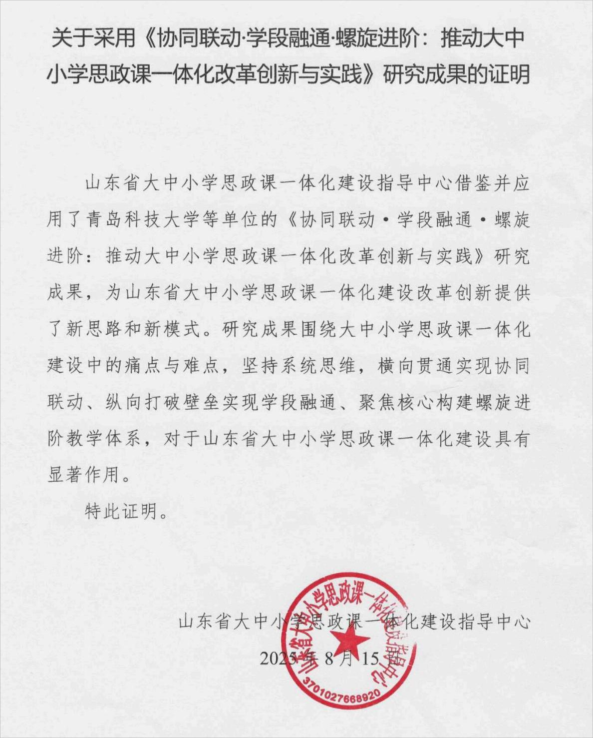 “协同联动·学段融通·螺旋进阶:大中小学思政课一体化改革创新与实践”教学成果